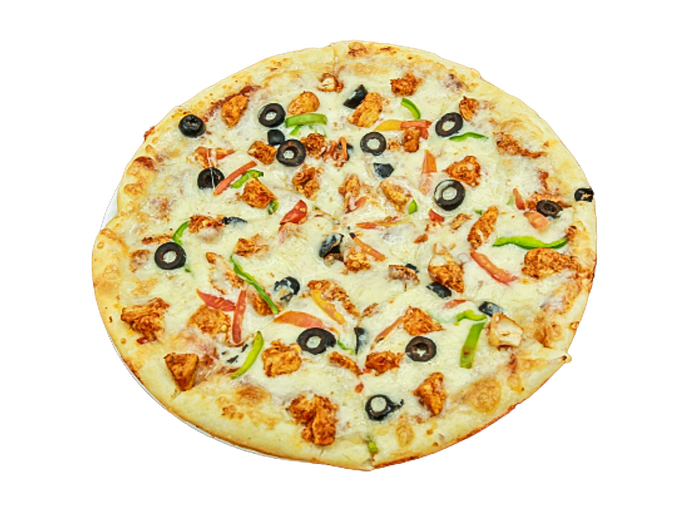 Salsa Tomate, Champinones, Pimitena, Aceitunas, Maiz, Cebolla, Espinacas y Orgeno